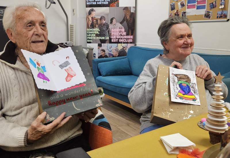 Les bénéficiaires ont également reçu de touchantes lettres écrites par des enfants de primaire, leur souhaitant de joyeuses fêtes de fin d’année. Ces messages ont profondément ému les participants. Pour compléter cette attention, quelques petits chocolats ont été distribués, ajoutant une touche gourmande à cet après-midi festif.