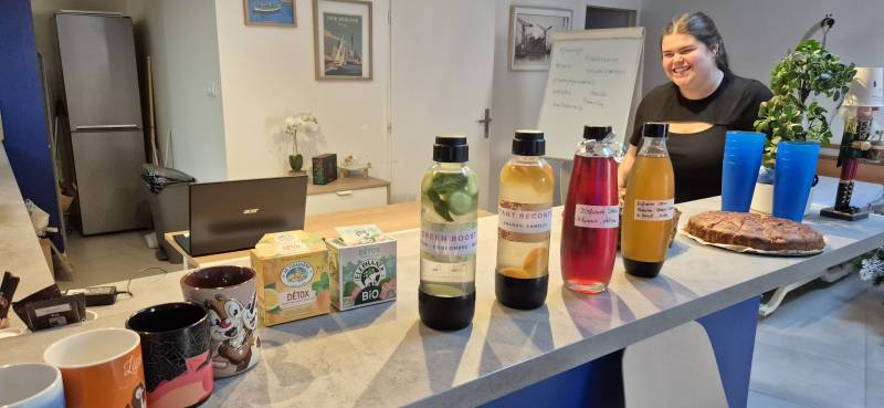 Pour l’occasion, plusieurs tisanes détox ont été proposées, avec des mélanges naturels tels que hibiscus et mélisse, ou encore curcuma, citron, fenouil et menthe. Des eaux détox maison étaient également au rendez-vous : l’une à base de citron vert, concombre et menthe, l’autre associant cannelle, orange et pomme, apportant fraîcheur et gourmandise.